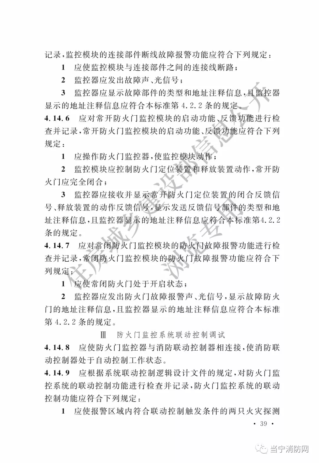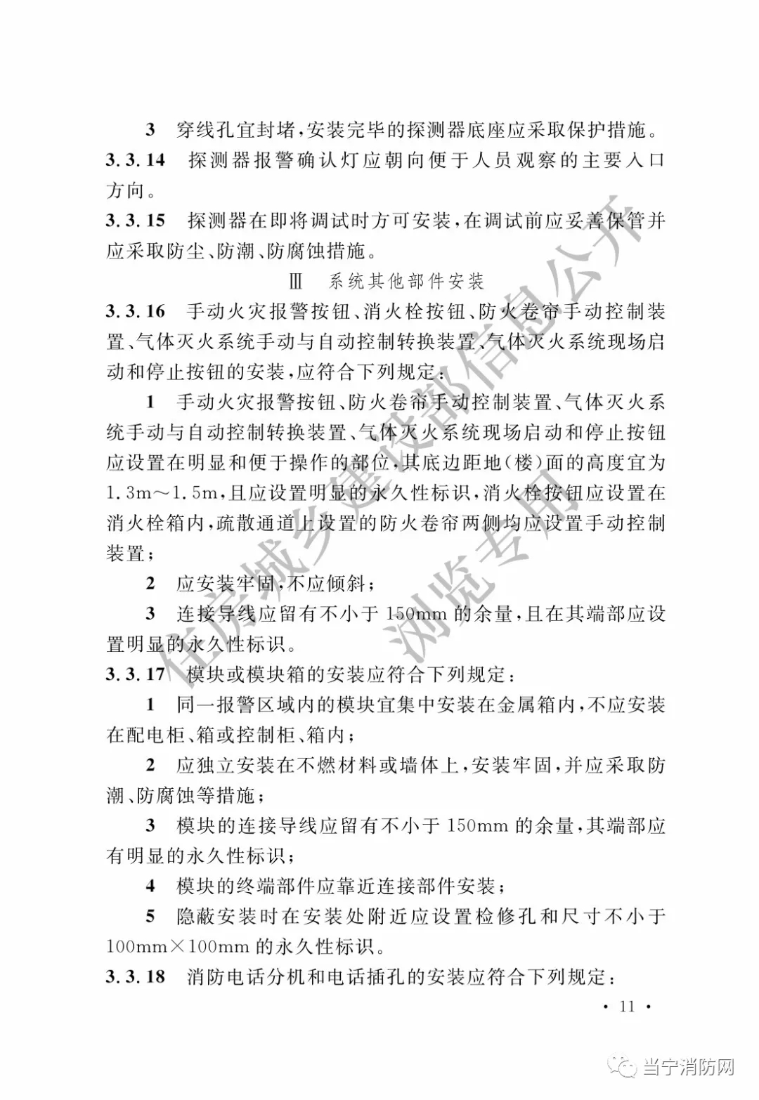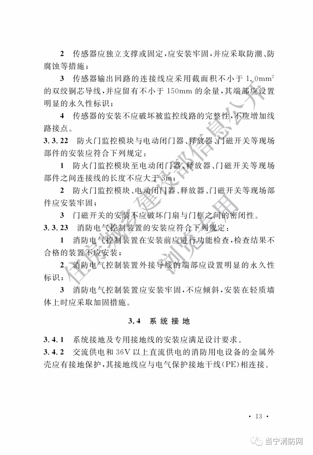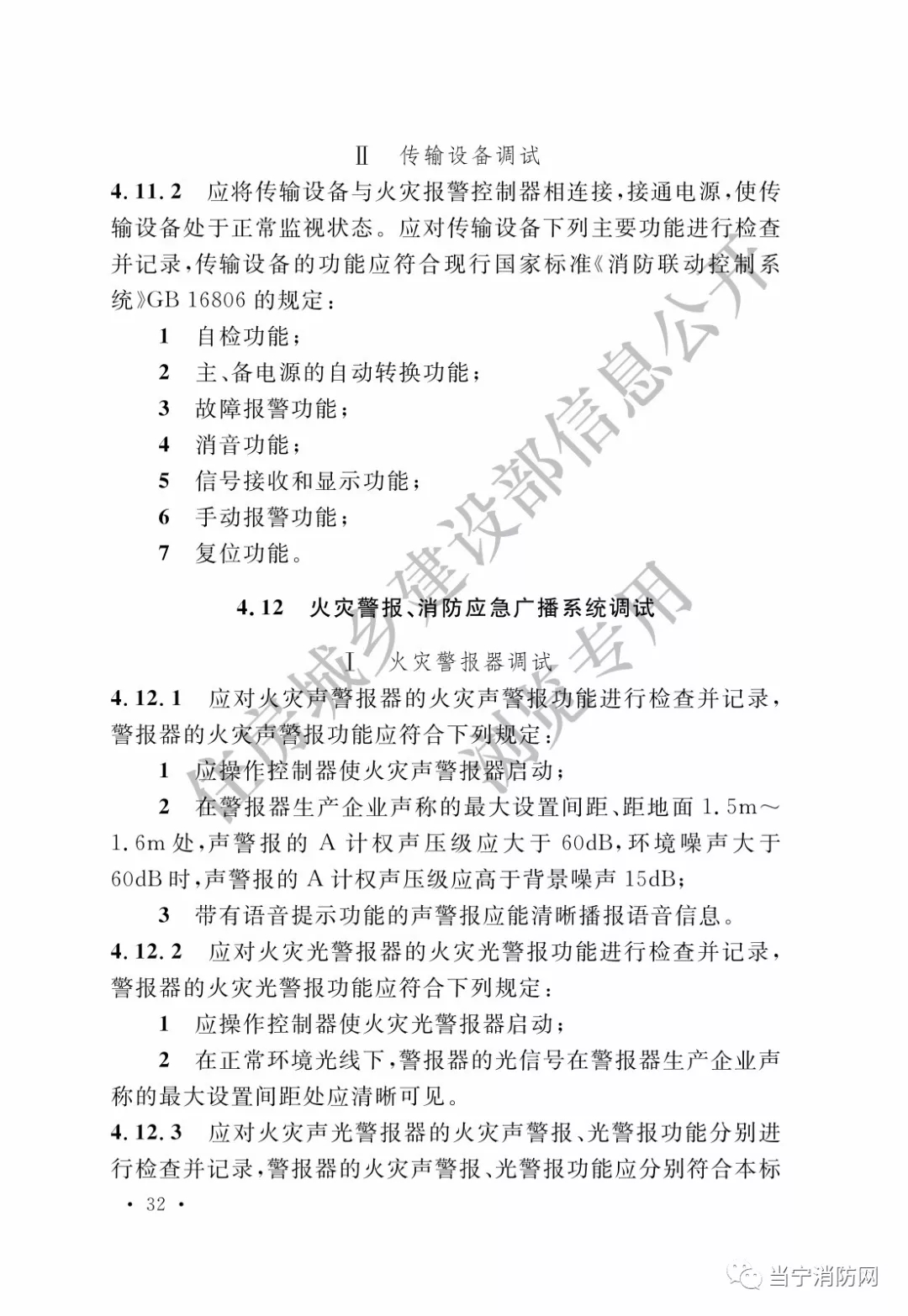 2.增加了电气火灾监控系统、传输设备(火灾报警传输设备或用户信息传输装置)、防火门监控器、消防设备电源监控器、分布式线型光纤感温火灾探测器和光栅光纤感温火灾探测器的施工、调试、检测及验收要求;